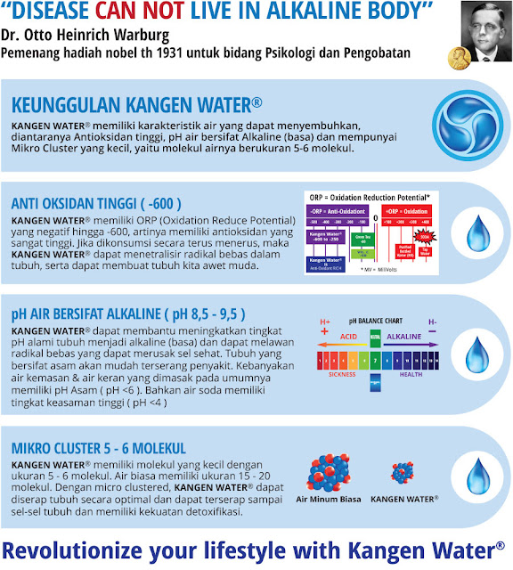Jika minum banyak air yang baik KANGEN WATER, Anda akan semakin sulit jatuh sakit. Saat air melembabkan area-area dalam tubuh yang paling mudah diserang oleh bakteri dan virus, seperti daerah bronkus serta mukosa lambung dan usus, SISTEM KEKEBALAN TUBUHPUN TERAKTIVASI sehingga menyebabkan area-area tersebut sulit diserang oleh virus.